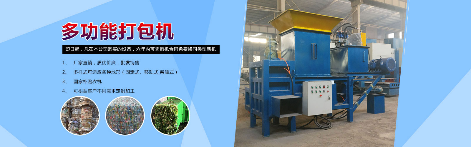 2、主營(yíng)產(chǎn)品有農(nóng)機(jī)設(shè)備,打包機(jī),廢舊金屬處理設(shè)備,木材處理設(shè)備 ,先后出口到英國(guó)、俄羅斯、瑞典、馬來(lái)西亞、越南等30多個(gè)國(guó)家和地區(qū)